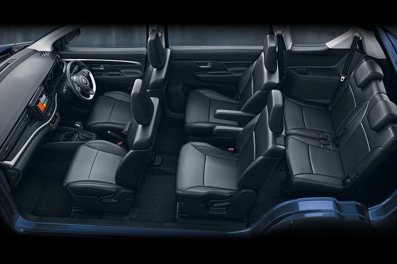 An all-black interior greets the occupants inside the XL6 which Suzuki claims to deliver a more upmarket look and finish. Touches of silver accents, along with stone-like and faux wood grain trim pieces provide an air of sophistication inside the XL6. But perhaps the most important feature inside the MPV are the captain-style second-row seats that come with built-in armrests. In addition, getting in and out of the third-row is now easier thanks to a one-touch recline and slide mechanism on the second row.