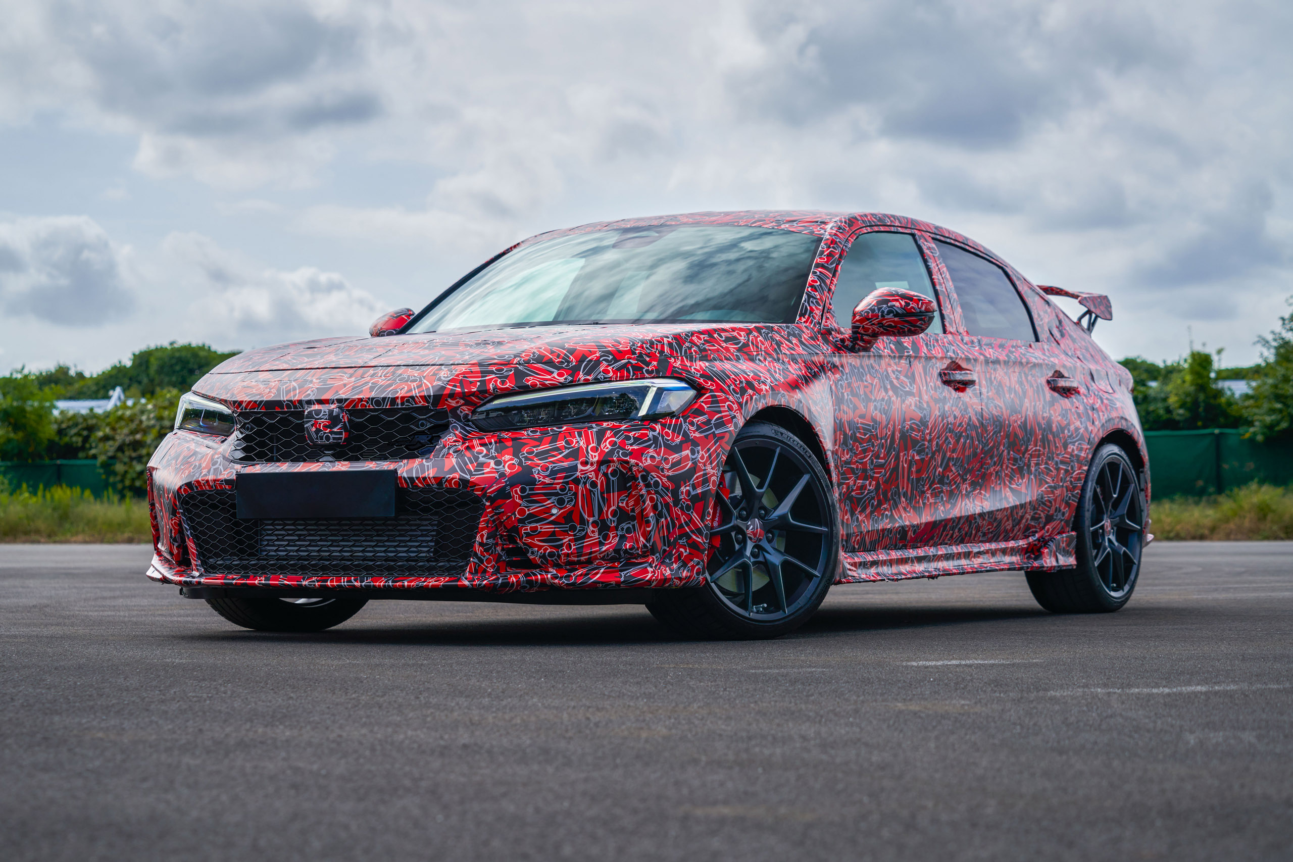 Honda has revealed the first images of the upcoming Civic Type R. It's still covered in camouflage, but it does give us an idea of what the new hot hatchback will look like. Compared to the current Type R, the upcoming model looks more sedate. However, we expect to see large vents on the front bumper once the camouflage is gone. Though it's a bit hard to tell, the hood appears to be vented as well.