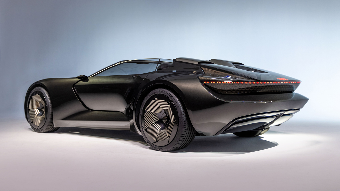 What looks like a luxurious grand tourer can literally transform into an electric sports car with the push of a button. Electric motors and a sophisticated mechanism hidden in the body can move the entire front clip of the vehicle forward or back, lengthening or shortening the wheelbase by 250mm. The two different setups are called “GT” and “Sport” modes. But the transformation doesn’t end with the exterior.