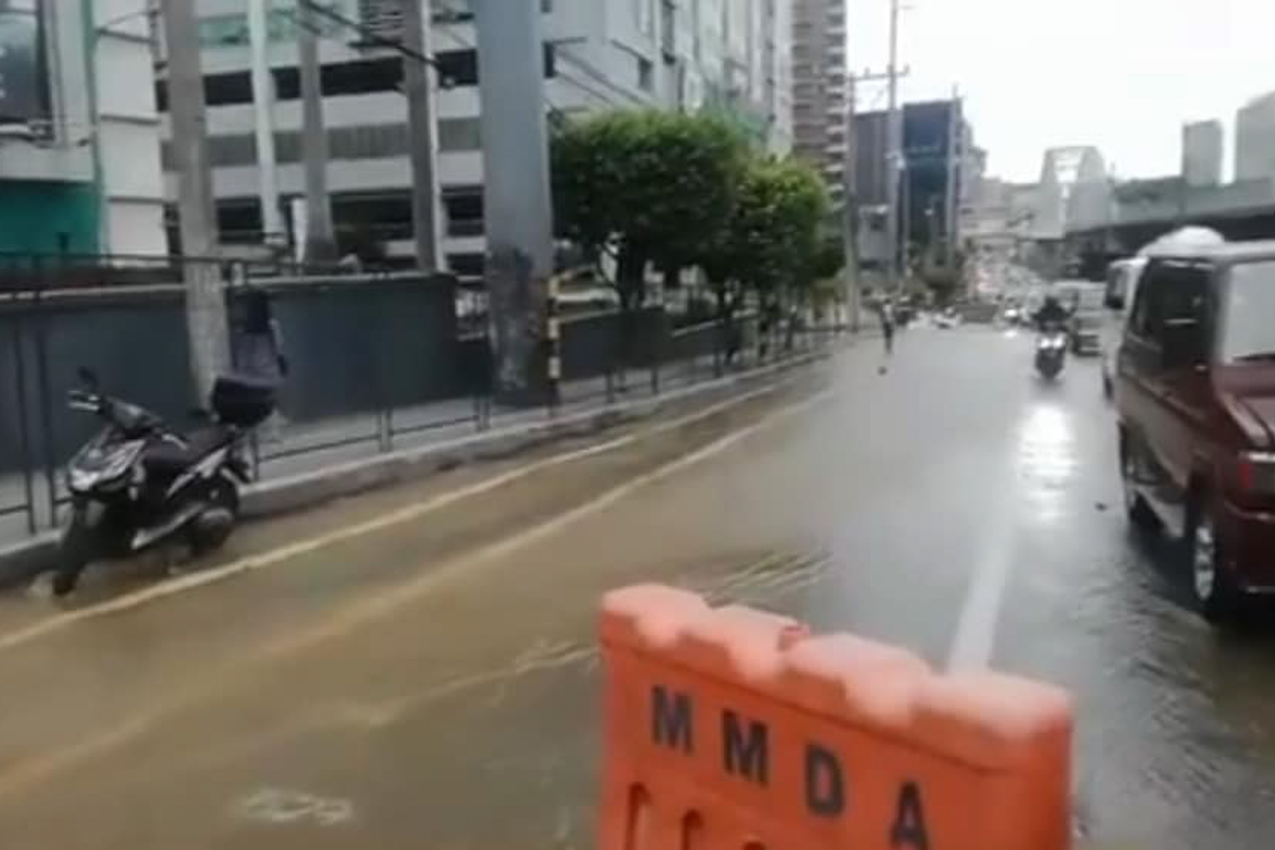 Supposedly, a contractor was preparing to put up new CCTV cameras near the area. They accidentally damaged the water pipe while digging, which resulted in the flooding and heavy traffic right now.
