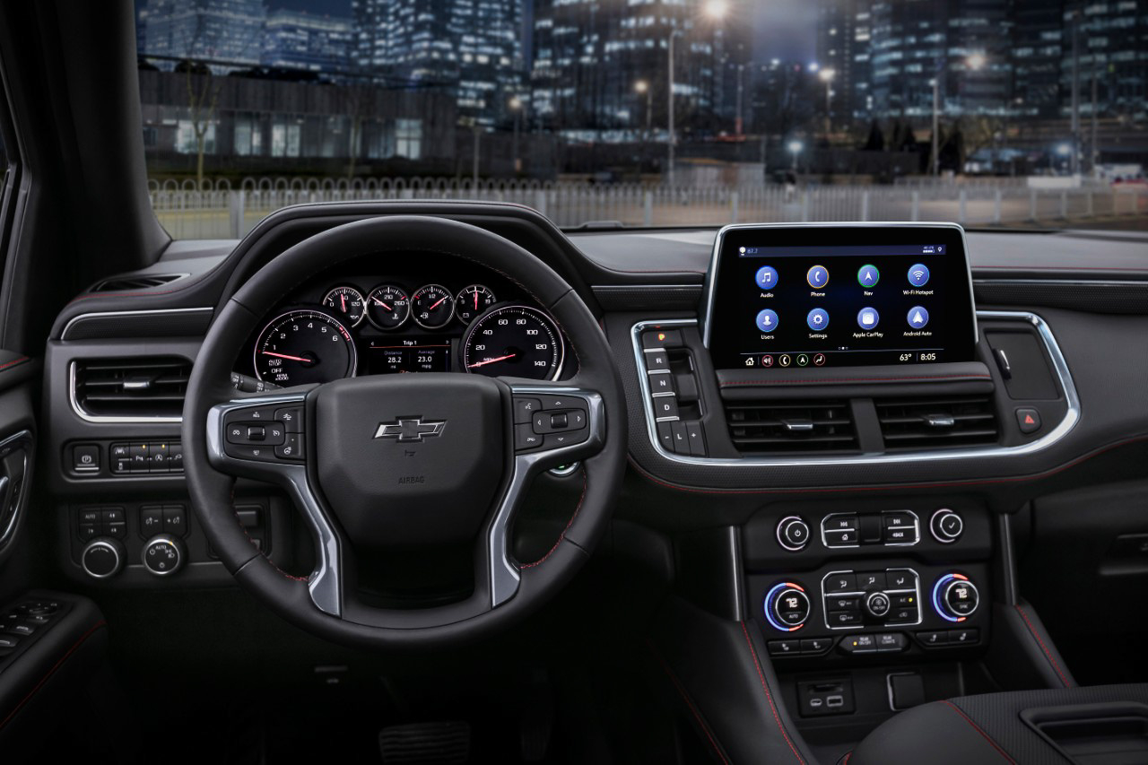 The new Tahoe and Suburban are all new models that have been redesigned and reengineered. The two vehicles now come with an independent rear suspension (IRS) instead of a leaf spring rear, a front fascia design derived from the Silverado pick-up truck, a new 10-inch touchscreen infotainment display with 4G LTE with Wi-Fi hotspot, Apple CarPlay, and Android Auto, and a rear entertainment system with 12.6-inch screens for the rear passengers.