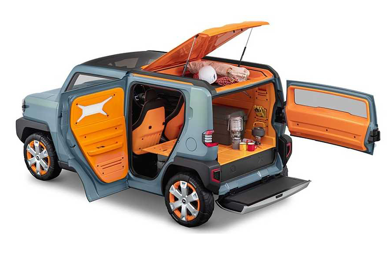 Being a vehicle meant for the outdoors, the Waku Waku does boast of very flexible cargo areas. The rear seatbacks fold flat, that’s something we’d expect, but Daihatsu added a bit of novelty in the tailgate. Its lower half serves as a stepboard while the upper half is the actual tailgate the swings to the side to open. Here’s the kicker: Daihatsu placed an actual cargo space between the headliner and the rear half of the Waku Waku’s roof. If you noticed the orange panel on the roof, that’s actually the “trunk” of this funky little kei-car.