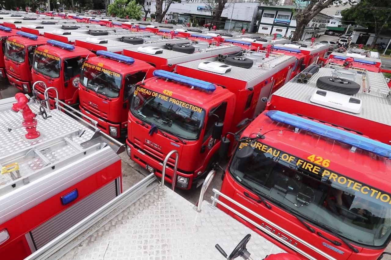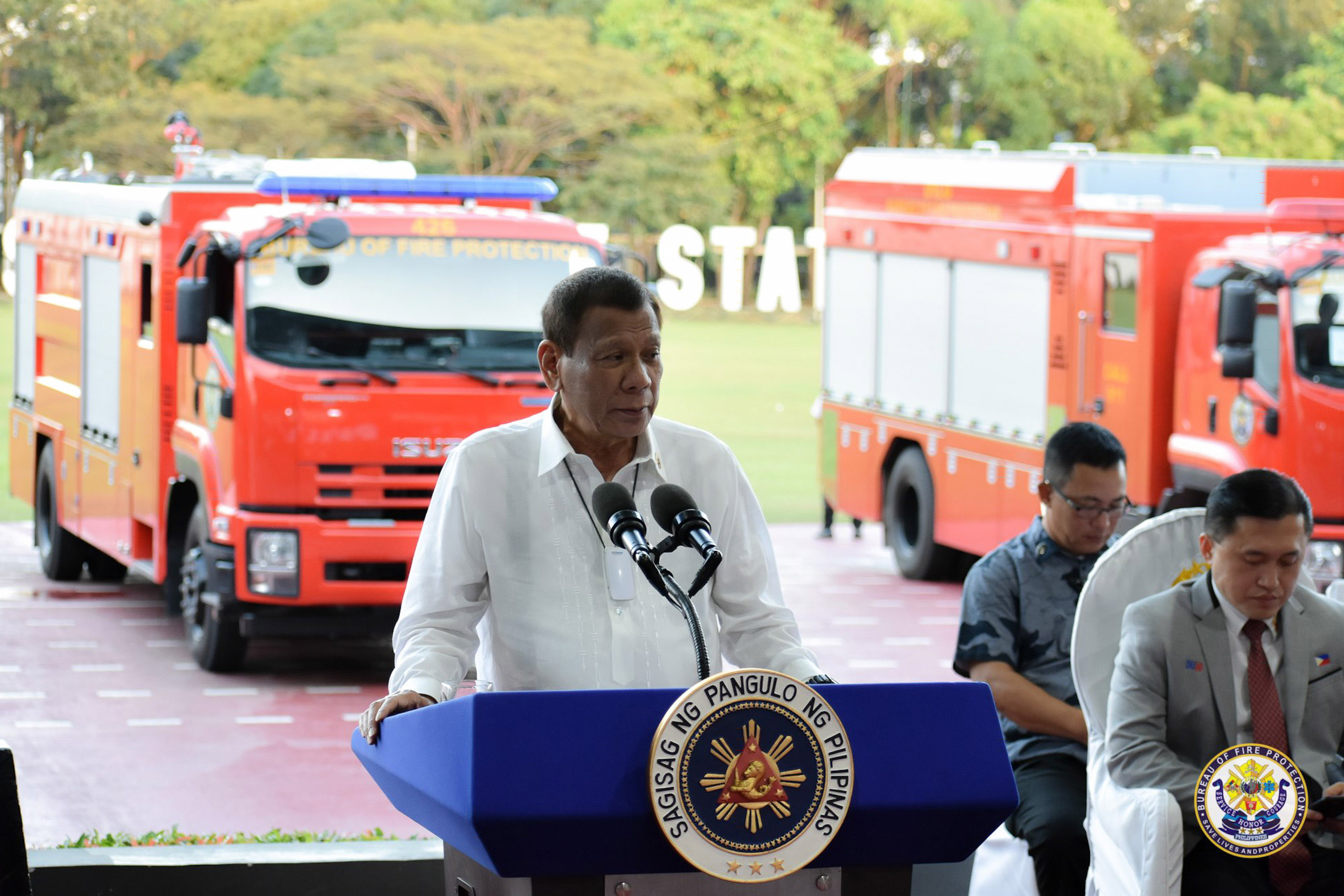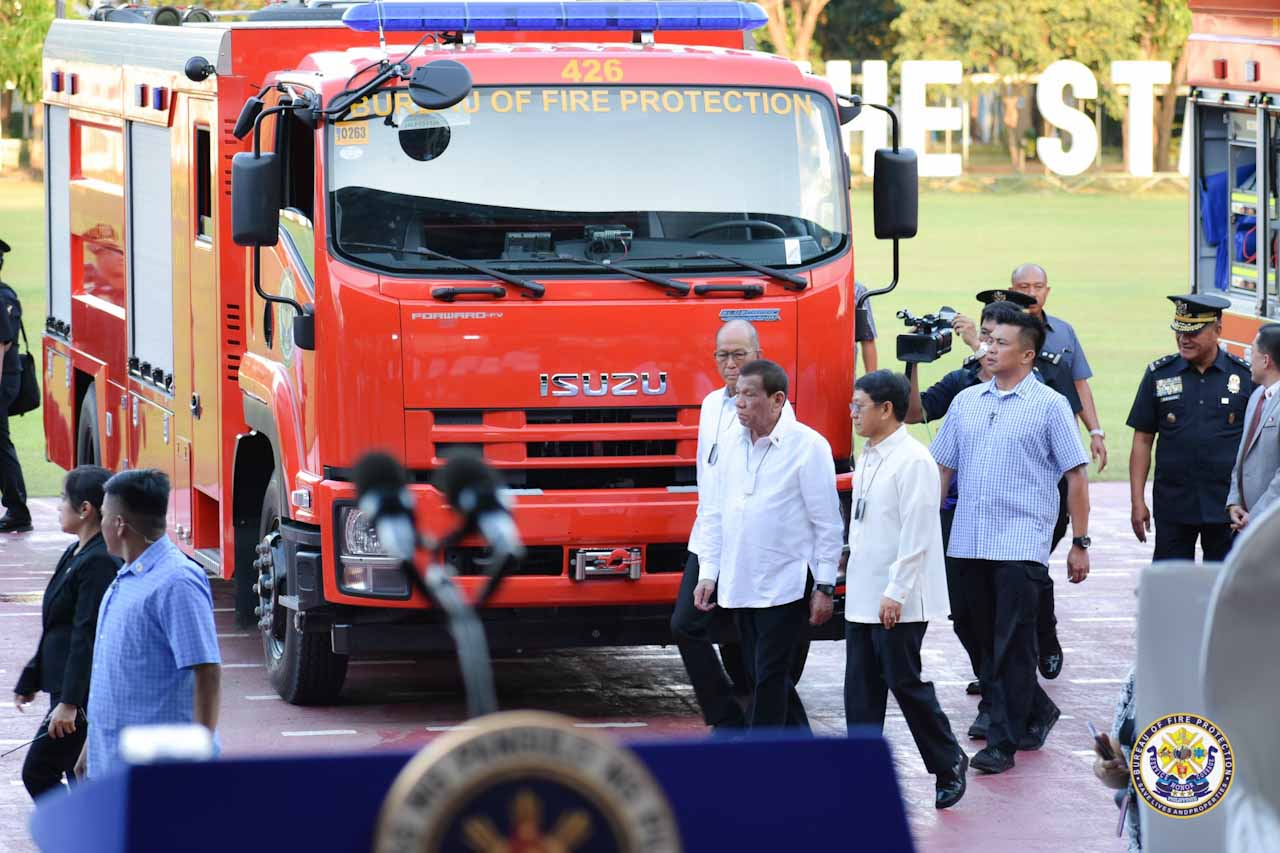 President Rodrigo Duterte turns over fire trucks to BFP...and sings the praises of Isuzu while he was at it