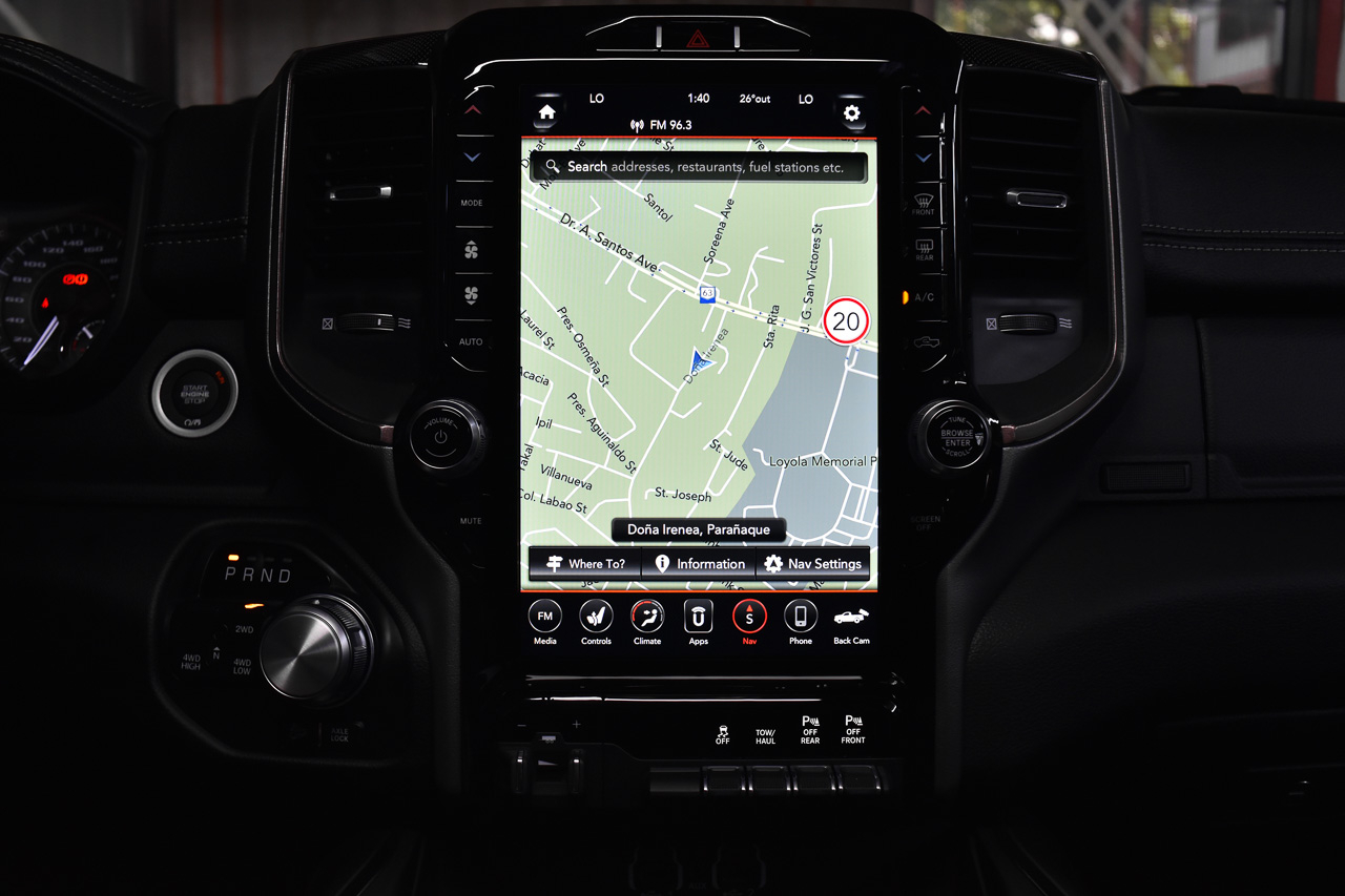 Other available features present on the Ram 1500 Rebel are power-adjustable pedals, power-adjustable front seats, 7-inch TFT multi-info display, voice command for the infotainment system, floor carpets, and a 9-speaker system with subwoofer.