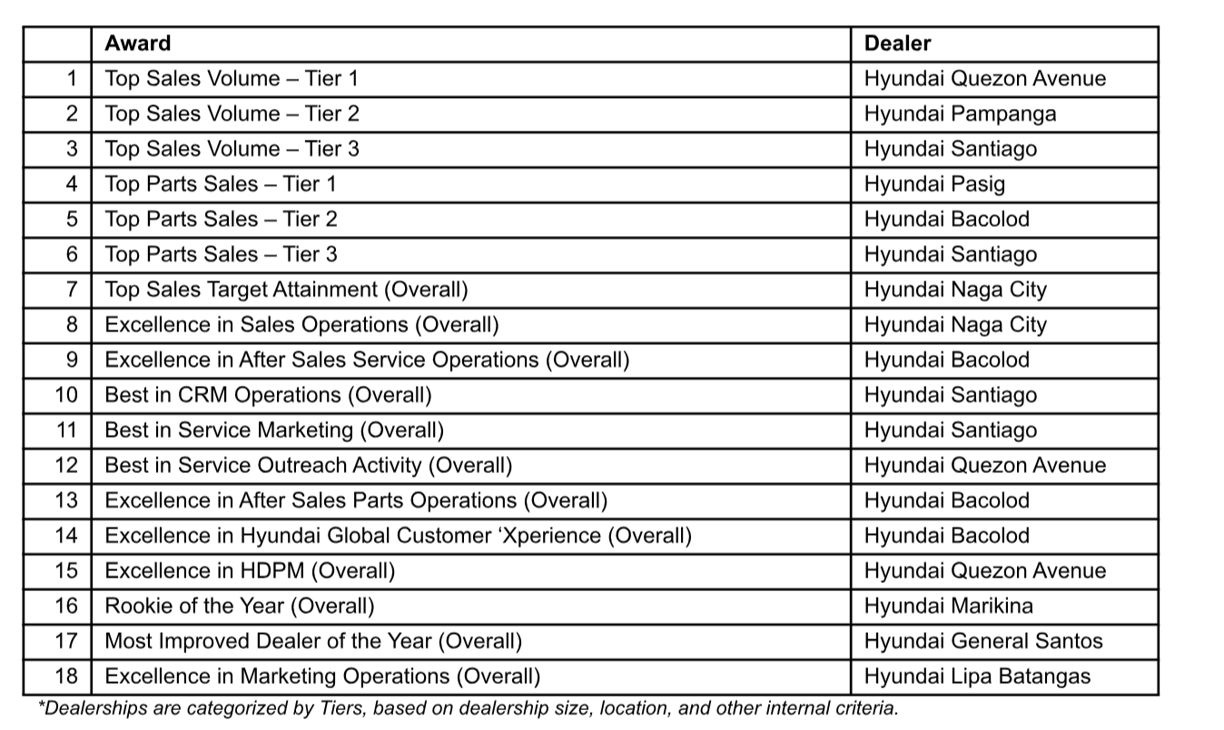 Hyundai Motor Philippines gives recognition to top performing dealers in 2026 Dealer of the Year Awards