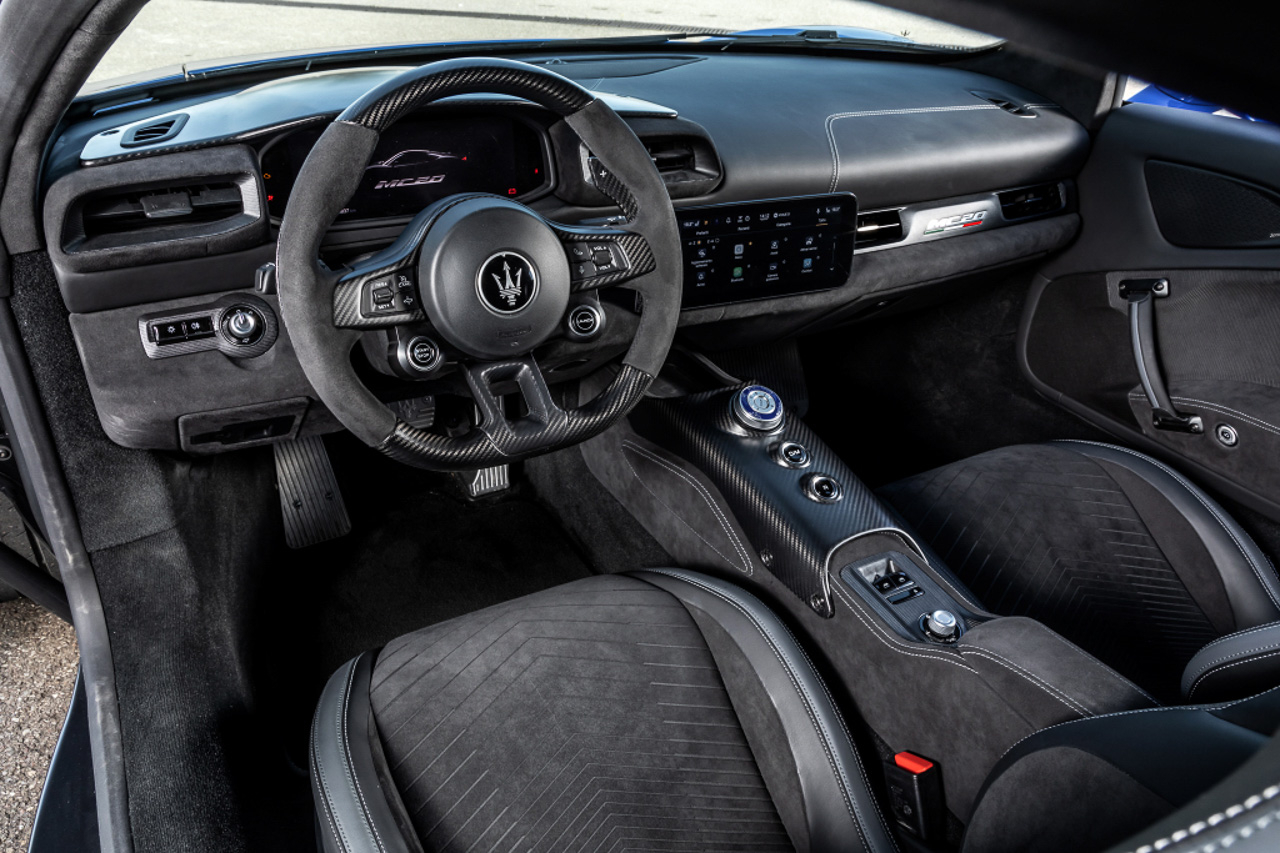 Maserati's new flagship supercar also comes with several niceties as standard. It gets a fully-digital instrument panel, a flat-bottom steering wheel, sport bucket seats, leather and Alcantara upholstery, a touchscreen infotainment system, and a wireless phone charger.