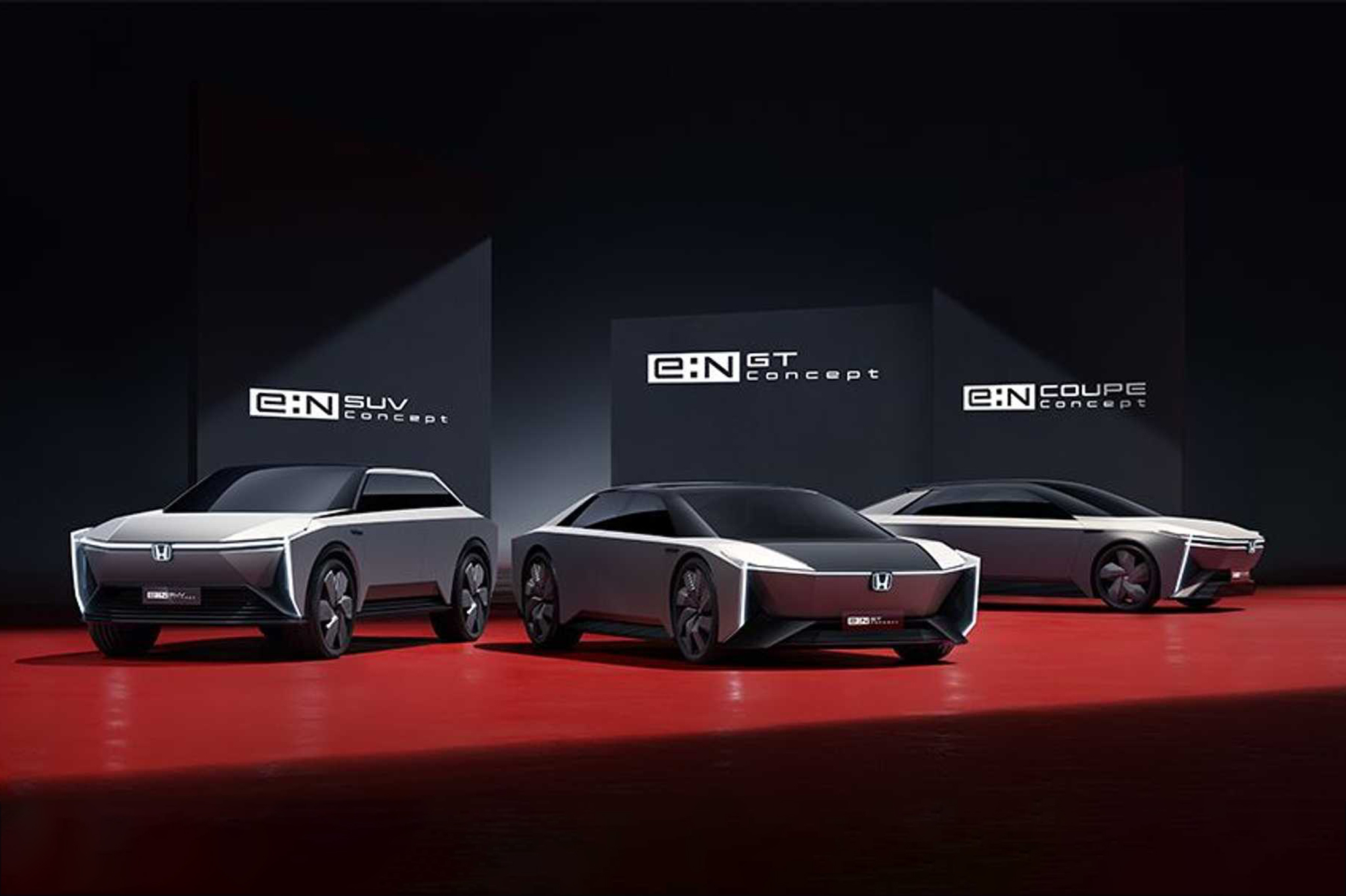 Aside from the e:NS1 and e:NP1, three more e:N models are under development – the e:N Coupe Concept, e:N SUV Concept, and the e:N GT Concept. Honda says the goal is to launch these models within five years. No details were provided, but the trio of concepts look nothing like Honda's current production models. Instead, all three have boxy styling and adopt a unique headlight configuration.