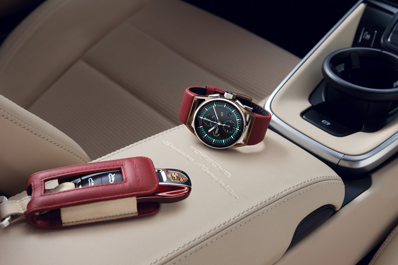 Drawing inspiration from such models like the 356, and the original 911 Targa, the design of the face with its white seconds hand and Phosphorus Green rings is based on the speedometer and rev counter of the cars. Meanwhile, the hour indices were designed following the signature lettering typically used for Porsche. Finally, the strap is made of genuine Porsche interior leather and comes with a distinct ‘911’ embossing.