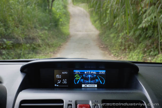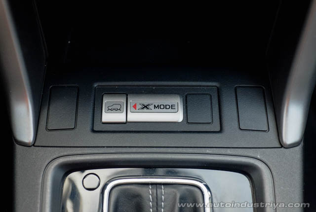 Besides HDC, X-mode automatically adjusts the ABS, traction control, and VDCS to be more tolerant of the frequent wheel spin and slip that is typically encountered when driving through tough terrain. Having these systems on, after all, can inhibit off-road performance, particularly in mud and sand, where constant motion of the wheel is required to overcome such obstacles. In short, X-Mode is a simplified traction and stability program specifically designed for use off-road. Through various sensors in the vehicle, it reads the terrain and makes the necessary adjustments so that the driver need only focus on the road ahead.