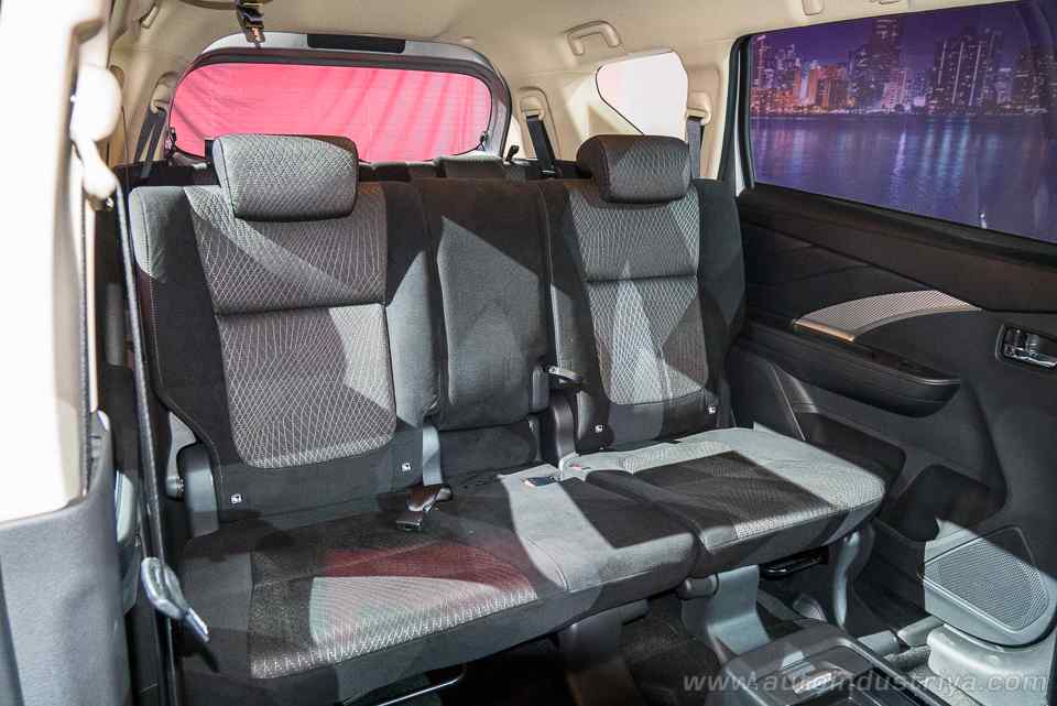 Inside, the Xpander boasts a wraparound dashboard with different kinds of trimmings depending on the model selected. Seen on the center stack is an upright infotainment touchscreen (standard for high-spec models) and below it are the controls for air-conditioning. Speaking of which, there are a ceiling-mounted vents to keep the rear passengers cool. Lastly, the Xpander is the first in its segment to boast fold-flat seating for the third row.