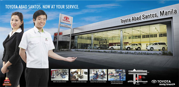 Strategically sprawled along the bustling Jose Abad Santos Avenue, Toyota Abad Santos (TAS) aims to provide Toyota's full line-up of products and services to customers residing in the Western Manila area.