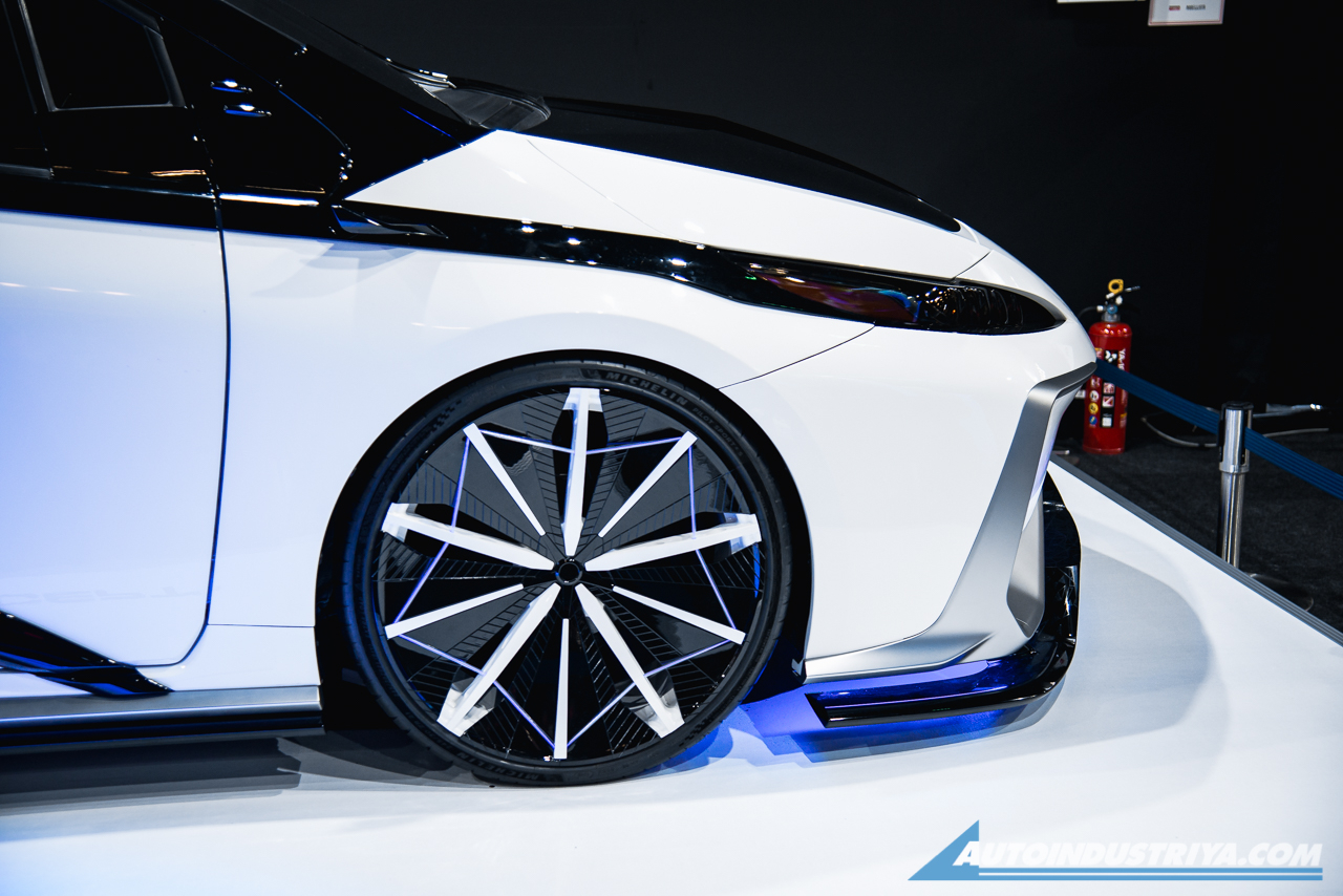 Most of the exterior styling has been altered. However, one can still easily make out the Prius’ shape. The front end now features an aggressive bumper with what looks like a neon display lighting paired with an equally aggressive splitter. From the side, you can see the new side skirt and unique star-design wheels with neon lights. There’s also a large trim piece on the door.