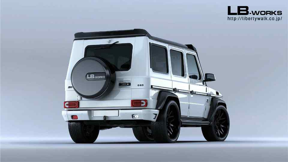 The kit for the G-Class is branded under LB Works, and really takes the classic (but modern) look of the SUV to a different level, albeit more for street use. LB Works didn't really describe the kit in detail (or at all), but from what we can see, the kit for the G 63 AMG includes the wider wheel wells, a carbon hood with an air scoop, an LB grill, and other cosmetic accessories.