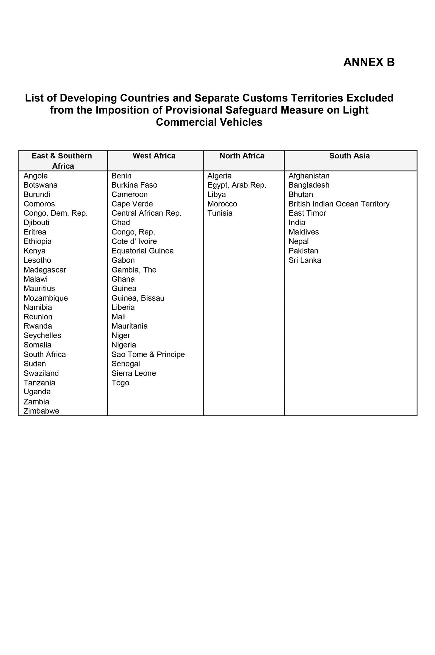 Indonesian vehicles may also be partially exempt as Indonesia isn't in Annex A, but is included in Annex B. That means Indonesian-made LCVs classified under AHTN 8704.21.19 or 8704.21.29 and are exempted, while passenger cars are not. Interestingly, North Korean (Korea, Dem. Rep.) made vehicles are exempted too... not that we have any in our market.