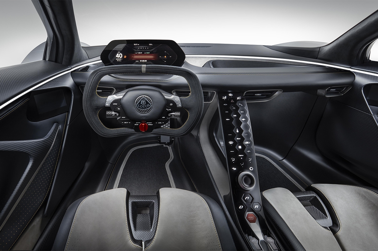 As for what's inside, Lotus made use of a motorsport-inpsired cabin. From the racing wheel, unique digital instrument panel, and the fully adjustable race-style seats, Lotus wasted no time making it look like a race car's cockpit. But what is perhaps the Evija's most eye-catching feature is its tablet-like center console. It serves as the car's infotainment system and can also display important information about the car itself.