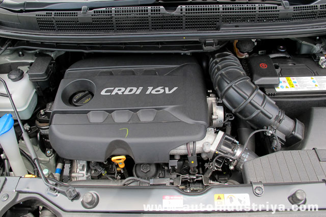 Behind the tiger grille is a new engine: a 1.7 liter, DOHC 16-valve inline-4 CRDI turbo diesel. Power and torque? 136 PS and with 320 Newton meters of torque, and that combined with a 6-speed automatic makes for a rather interesting combo.