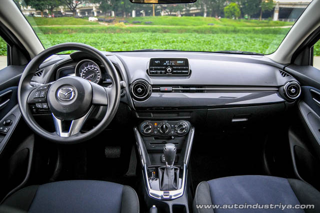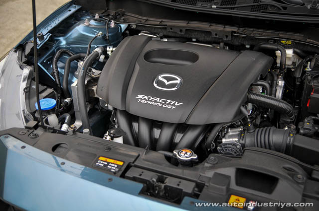 Pop the hood and there sits a 1.5 liter twin cam 16-valve SkyActiv engine with 108 PS and 139 Nm of torque matched with a front-wheel drive SkyActiv 6-speed automatic. To the uninitiated, SkyActiv is Mazda-speak for technologies that improve fuel efficiency through better engines (through higher compression), new technologies, better transmissions, and lighter, stronger bodies and suspension subframes. As a result, the Mazda2 is the lightest in its class when compared to the Jazz, Fiesta and Yaris.