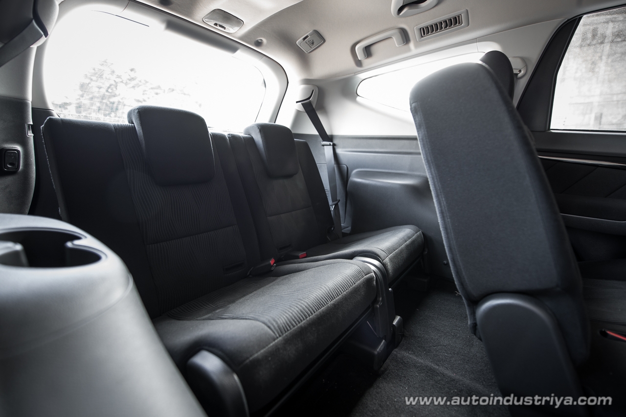 The middle row is likewise a nice place to be in, and there's an armrest that folds down at the expense of a passenger in the middle. The view from the middle row isn't bad either; the seating position is comfortable and affords a nice vantage point that should help those who easily get nauseous from long drives. Space in the middle is good; for my 5'6” height, there's about 5-6 inches of kneeroom to the front seats. The third row is, as expected, best left for smaller individuals as getting in and out can be tricky, despite the easy one touch fold and tumble for the second row of seats.