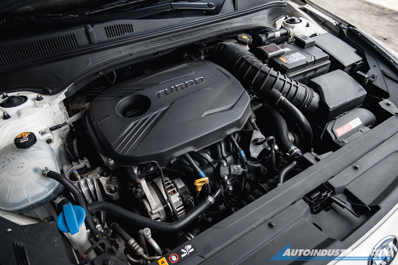 The smart key is nice; the buttons are on the rim, not on the face. Press the ignition and you'll kick up that 1.6-liter engine behind that neat grille. Now I did mention that this is a performance car, but some would wonder what a 1.6-liter can actually do. Well, that's the magic of a turbo intercooler system. Together with direct injection, this Kia Forte GT has 204 PS. It's the same engine as the one found in the Veloster, which is really the Forte GT's not-so-distant cousin from the larger Hyundai-Kia family.