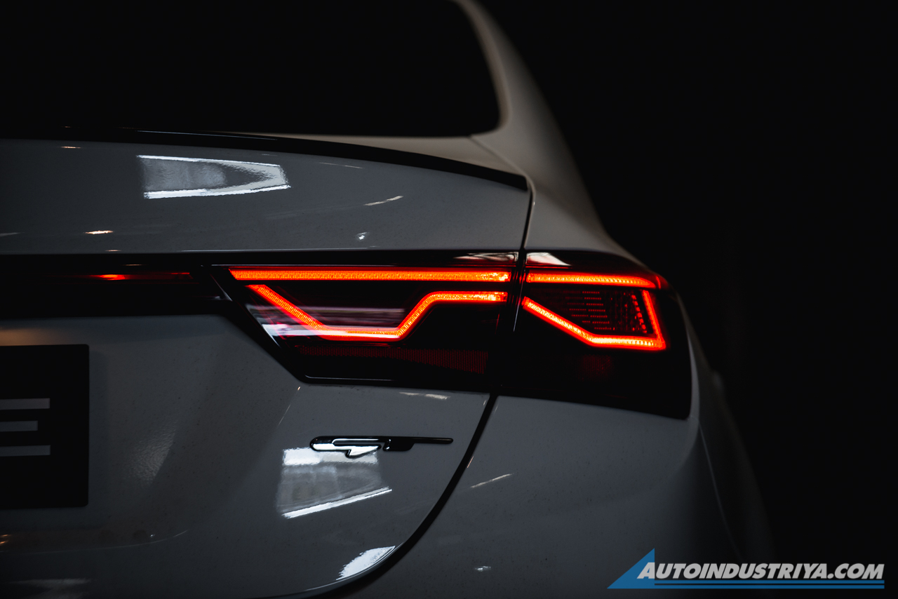 The headlamps are sleek and extend all the way to the fenders. What we really like is the treatment of this top-spec GT variant, particularly the large wheels and the black accents all around for a sportier look. The LED pattern on the taillights is really nice too. One thing we did notice is that Kia appears to have borrowed the Hofmeister kink as seen on BMWs.