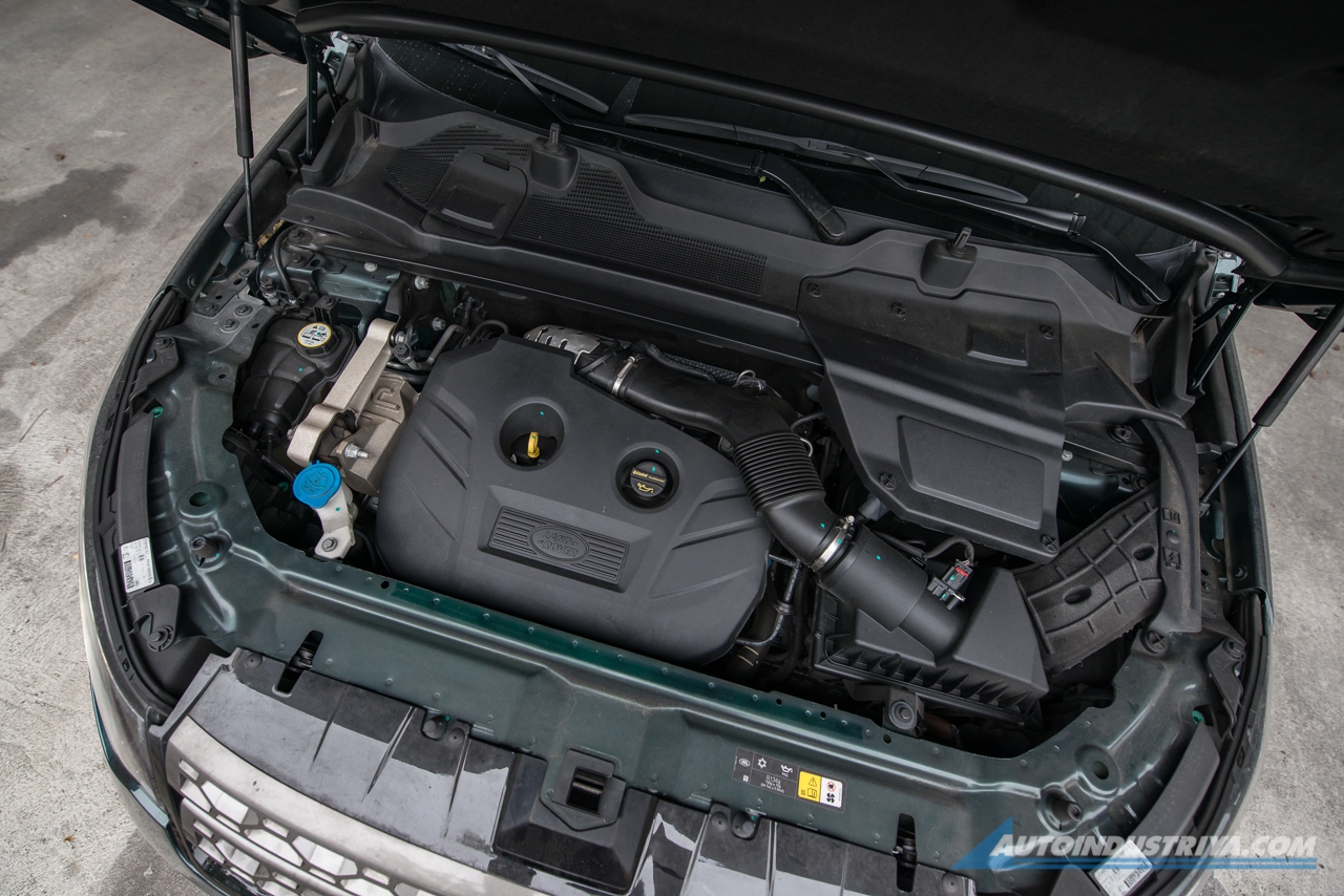 Under the hood of this Land Rover is not a turbo-diesel engine. Powering this particular Discovery Sport is a gas-powered, 2.0-liter turbocharged four-cylinder engine. Despite its size, this inline-four produces an impressive 250 PS at 5500 rpm along with a healthy 365 Nm of torque at 1200 - 4500 rpm. Power is then sent to all four wheels via an all-wheel drive system and nine-speed automatic transmission with paddle shifters.