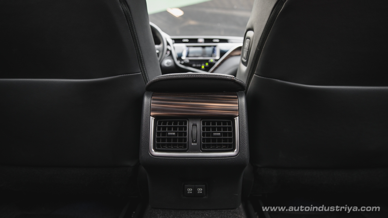 But it's the space that impresses the most inside the Camry. Despite the rakish design, Toyota has managed to make it feel airy. Plus, given its size, there's acres of legroom, hip room, and headroom. This is a true five-seater sedan that won't force you to elbow the person beside you. There's a neat climate control system at the back too. It's a black panel that lights up when in use, and it allows you to change the temperature without having to tell the person in front your preferred settings. Even the backrests recline which wouldn’t look out of place in a Lexus.