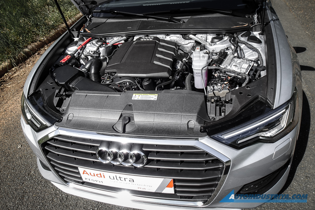 There was a bit of a surprise with the Audi A6: this is actually a hybrid... sort of. Not that the casual onlooker or even the casual Audi enthusiast would notice (without reading about it); there are no outwardly signs or indicators that this is a hybrid like special badging or blue halos. Instead, all we get is the TFSI badge, signifying that it has a 1984cc turbocharged engine with 245 PS and 370 Nm of torque. The engine drives the front wheels which is unusual because it's longitudinally-mounted; that orientation is so it can be compatible with the optional quattro four-wheel-drive system.