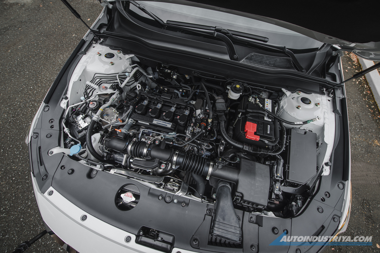 Yes, the Accord has a puny 1.5-liter motor under the hood, and they didn't even try to mask it with decorative covers made of high temperature plastic like you would expect in higher-than-normal spec cars. But despite its diminutive displacement and unusually cluttered look, the 1.5-liter engine has it where it counts because it's turbocharged, intercooled, and comes with VTEC. Yes, it's basically the same type of engine as the one in the Civic, but has been uprated. At 190 PS, it means it has more power than the older 2.4-liter naturally-aspirated VTEC engine. It has more torque too at 260 Nm that's available starting at 1500 rpm up to 5500 rpm. The transmission is a CVT that drives the front wheels.