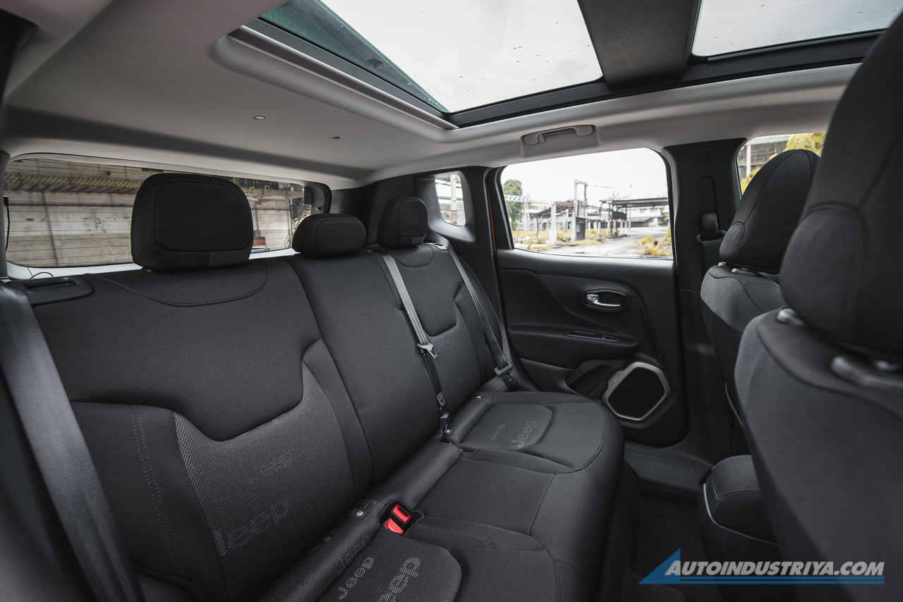 Where the Renegade excels at is in the headroom and front room department. Even with the seat in its highest setting, there was still more than enough headroom left and that's with a panoramic roof. The front footwell is wide; a big plus in a small vehicle. Adjustability is excellent as well with a wide range of motion from the telescopic steering wheel and the seats. It seems that the Renegade was made to fit a wide variety of people, from the vertically challenged to the vertically gifted. At the back, however, it isn't as rosy. It's not cramped, but there won't be acres of room left if you're tall. The Renegade does make up for it by having a sizable cargo area.