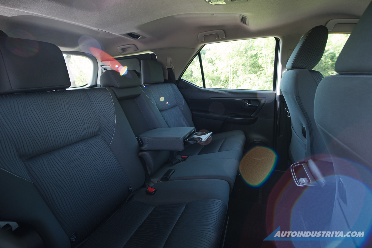 Pre-facelift Fortuner Gs had what looked like mocha-colored seats. Toyota has ditched that in favor of black. For me, it's a good move since it matches better with the glossy highlights in the cabin. The seats could use a little extra cushioning and bolstering to make these feel more snug. Since second-row seats slide and recline, extra cushioning would definitely up the comfort level.