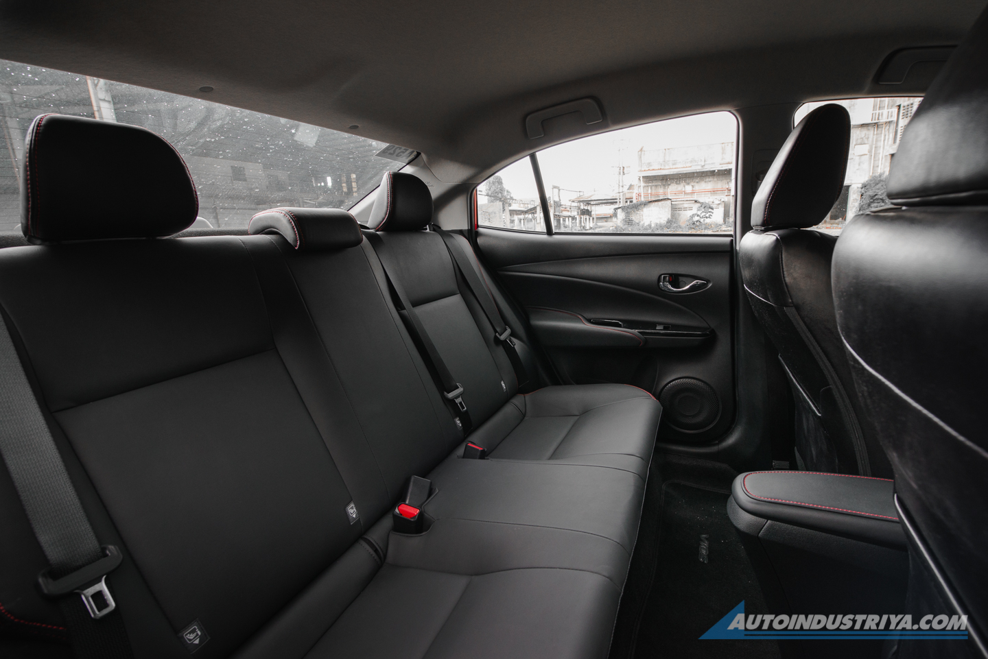 The seats secure your back and legs more, similar to sports seats. It’s not like the one in the GR Yaris or the GR Supra, but these do hold you in place slightly better. There are inserts of suede matched with leather, giving the Vios a very upscale feel. It's matched with red contrast stitching which can also be found on the siding and rear seats.