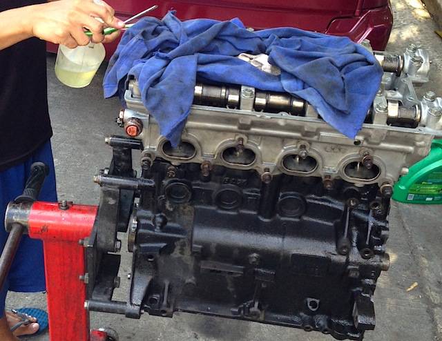 The valves and springs had to be re-set. An overhauling kit was sourced to replace all the gaskets with steel and the rubber seals replaced with new ones. The intake manifold was cleaned up while the valve cover and timing belt cover were sent to MJ Autoshop in Metrowalk to be professionally painted in the same red as the body while the lettering was shaved. Every component now uses Motul lubricants courtesy of FluidForce. Each screw, nut, bolt or any other part was cleaned and matched meticulously by Karlo at K's Racing to original specifications. Basically anything that needed to be done was done right, even if it took quite a bit more time to do so.