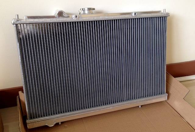 I was contemplating whether to get a cheap surplus radiator from Japan to replace my old one, but really when it comes to keeping your engine in tip top shape, the radiator isn't one place to save a few bucks on. Luckily JC Racing (www.jcracingsuspension.com) had a large aluminum radiator in stock for the Mitsubishi Lancer Evolution III; a perfect fit for my engine bay. When we fit it the radiator looked incredible in the engine bay and, given its intended purpose of cooling down a turbocharged 4G63, the naturally aspirated version shouldn't be a problem.