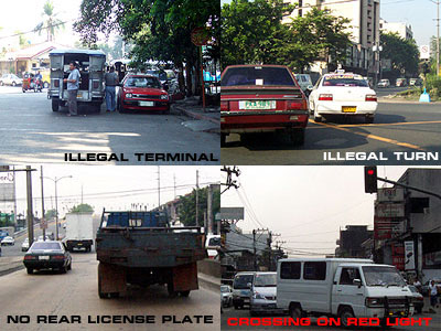 No Parking, No Left Turn, No Right Turn on Red Light, One Way, No Counter Flow, No Loading/Unloading, No Tricycles on Main Road, Pedestrian Crossing. These traffic signs and other rules, including traffic laws were installed for everyone to follow. They are not there as suggestions, but as rules. Thus, no one is exempted, including you. Unfortunately, the lax enforcement of these rules and the confusion surrounding these rules (attention: MMDA Traffic Enforcers and PNP Traffic Management Group) make it easy for everyone to violate even the most menial traffic rules. Add to the fact that most enforcers lack proper training, some are not dedicated to their duties and there are no shifting of duties and schedules among the enforcers to allow them to work more efficiently. For example, the evening traffic snarl sometimes extends after 8pm because no traffic enforcers can be found working after their office hours and traffic rules are blatantly violated by almost everyone. If you find yourself violating traffic rules and getting stuck in traffic, you have no one to blame but yourself. Like what they say, "It takes one man to make a difference."