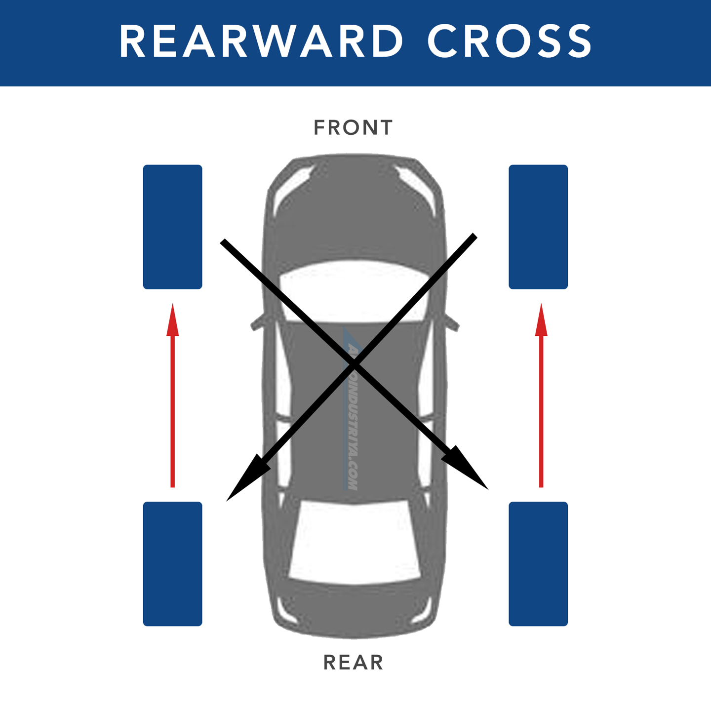 Forward Cross Rotation: For FWD vehicles