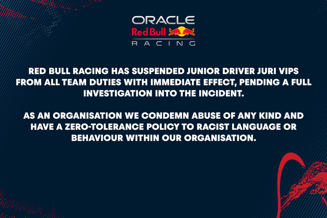 Juri Vips has been suspended from Red Bull Racing after saying racist and sexist remarks during a live stream. Vips, a reserve driver for the Red Bull F1 team was playing Call of Duty and was live on Twitch when he threw out the N-word, and called pink a "gay" color. His fellow Red Bull junior driver Liam Lawson was quick to call out the offensive slurs, but by then, the damage has been done.